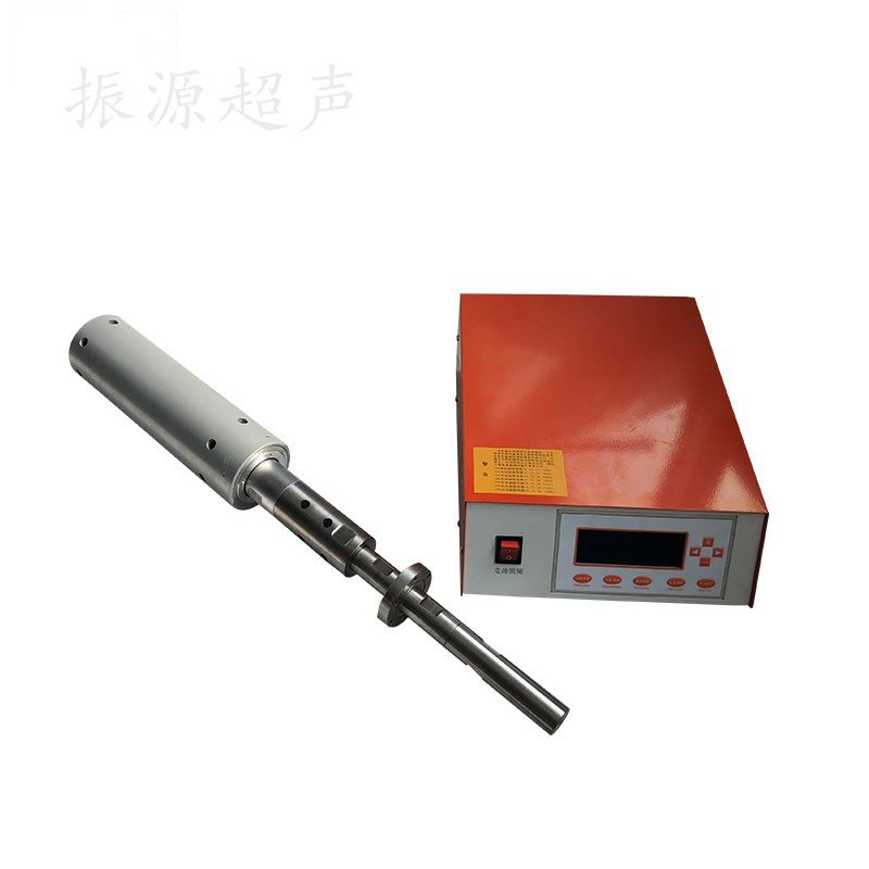 超声分散设备2.超声援动系统,为了获得大功率,其共振动频率选在15kHz 左右,超声发生器与共振系统组成了一个频率自动跟踪系统;(超声波换能器和超声波变幅杆组成的超声波振动子)。